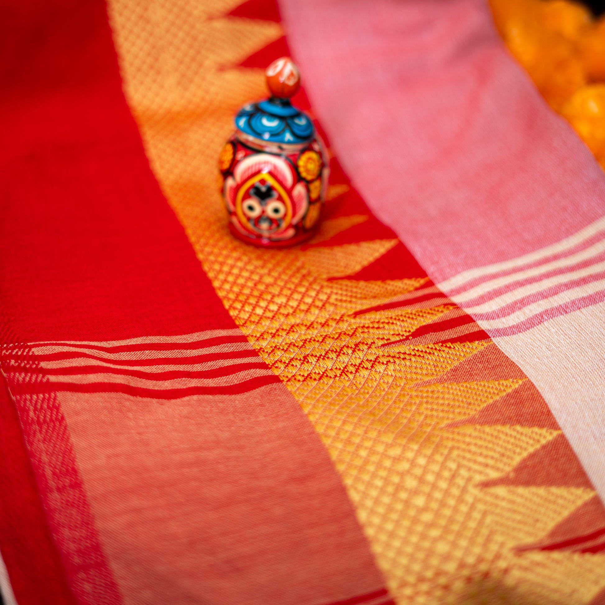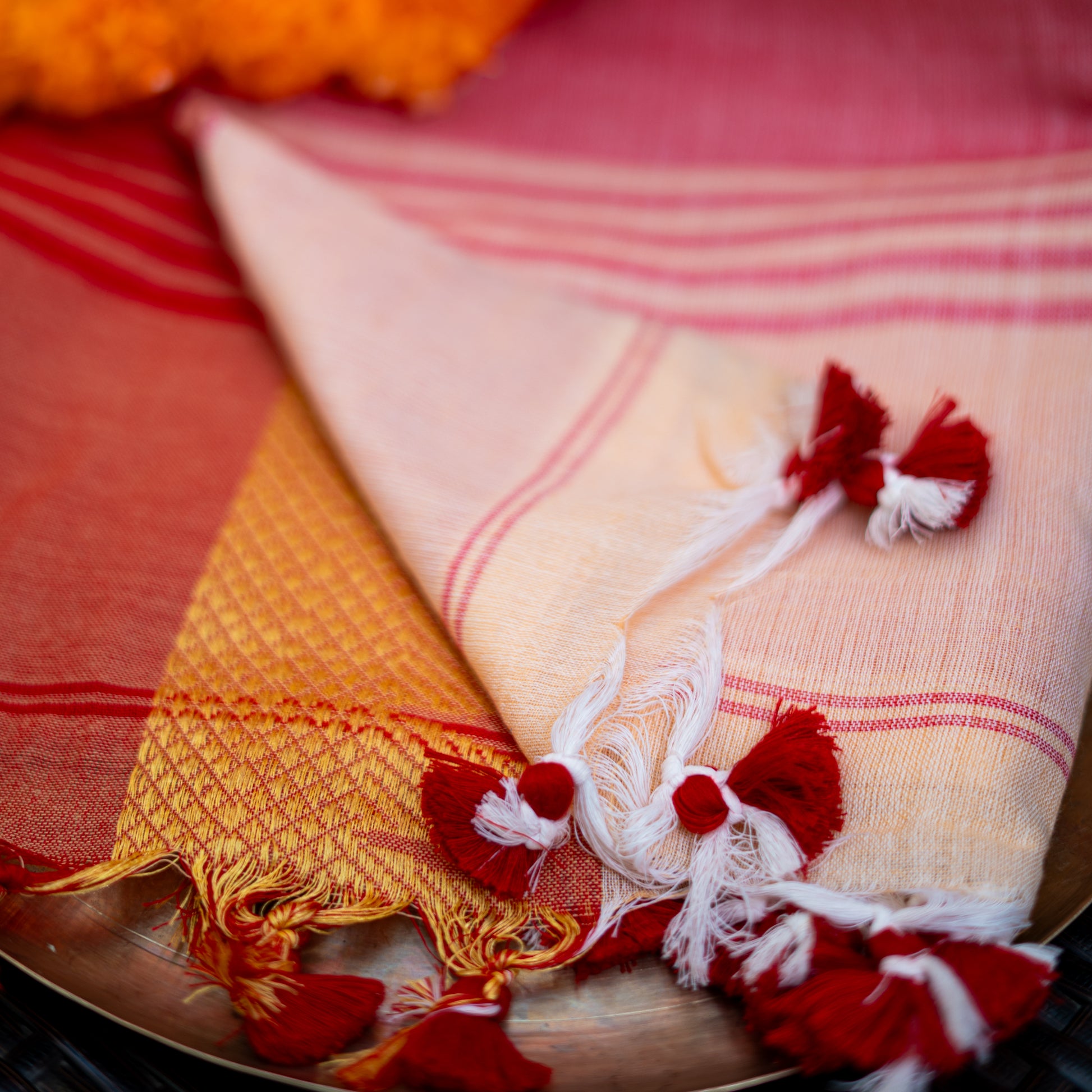 Executed entirely on handloom, the weave balances restraint and detail, resulting in a surface that feels considered, tactile, and inherently sophisticated.